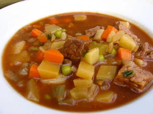 Tender stew beef, carrots, celery, tomatoes, and barley meld into a robust, deeply savory broth that’s surprisingly light. Hearty enough to satisfy, wholesome enough to enjoy—seconds (and thirds) included. A cold-weather cornerstone.