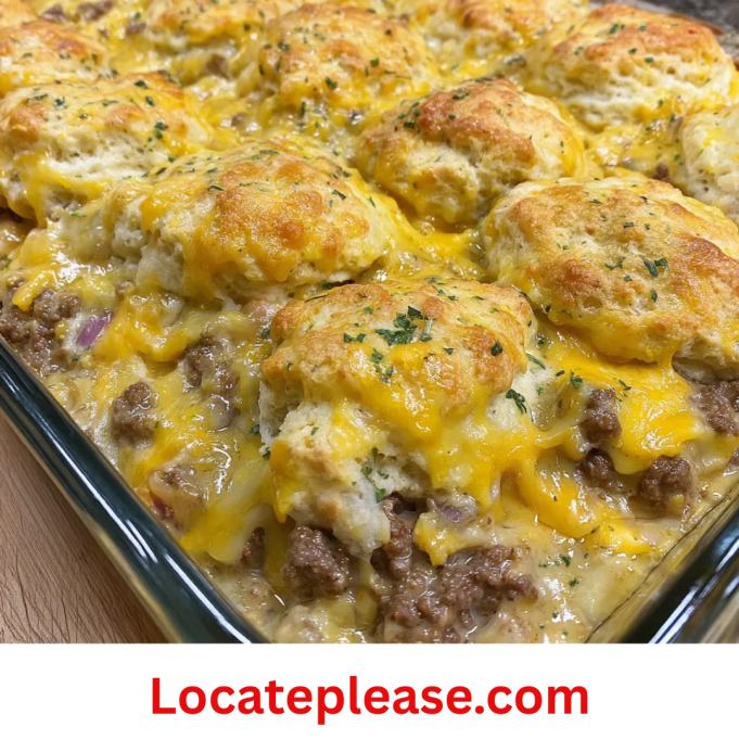 A comforting, flavor-packed dish that combines juicy seasoned ground beef with a creamy mushroom-sour cream sauce, all topped with golden, cheesy Cheddar Bay-style biscuits. Inspired by the famous Red Lobster side, this easy casserole brings that buttery, garlicky biscuit topping to your weeknight dinner—no seafood required!