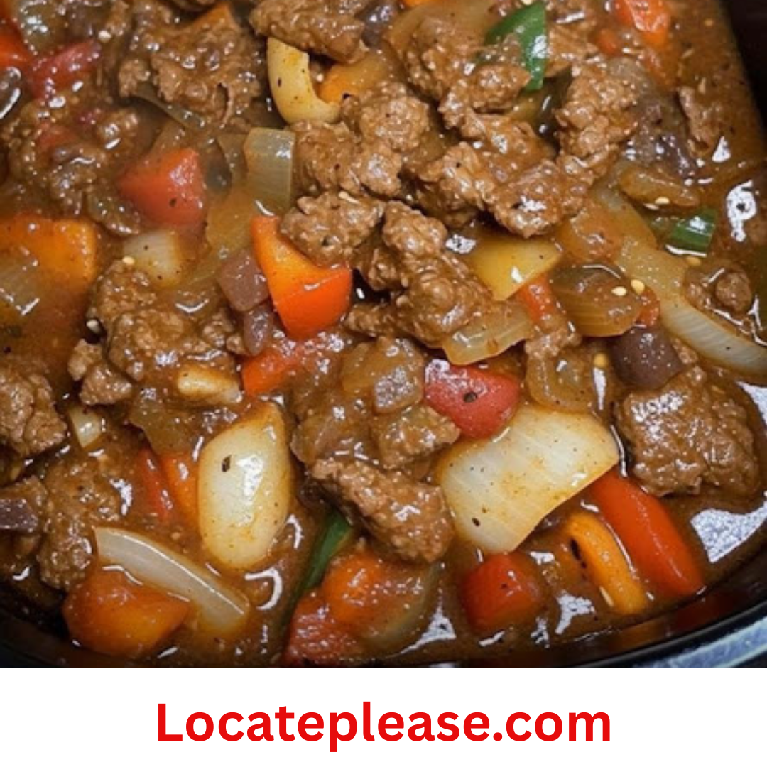 A rich, savory-sweet beef stew with tender slices of steak, colorful bell peppers, and onions simmered in a deeply flavorful sauce—slow-cooked to perfection. This easy one-pot meal brings the taste of classic stir-fry comfort without the high heat or last-minute cooking. Just set it, forget it, and come back to a kitchen full of aroma and dinner ready to serve.
