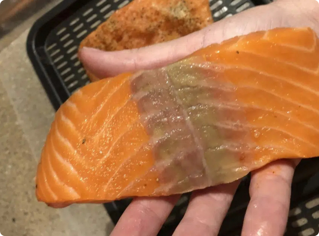 Salmon is naturally rich in healthy fats—part of what gives it that melt-in-your-mouth texture. But those fats can oxidize over time, especially if the fish has been frozen for an extended period or wasn’t stored airtight. Oxidation causes the fat to change color, often turning yellow or even slightly brown. Think of it like an apple slice left out too long—it browns, but it’s not necessarily spoiled. Similarly, oxidized fat may affect appearance and flavor slightly, but it doesn’t mean the salmon is unsafe—as long as there are no other signs of spoilage, such as a sour odor, slimy texture, or off taste.