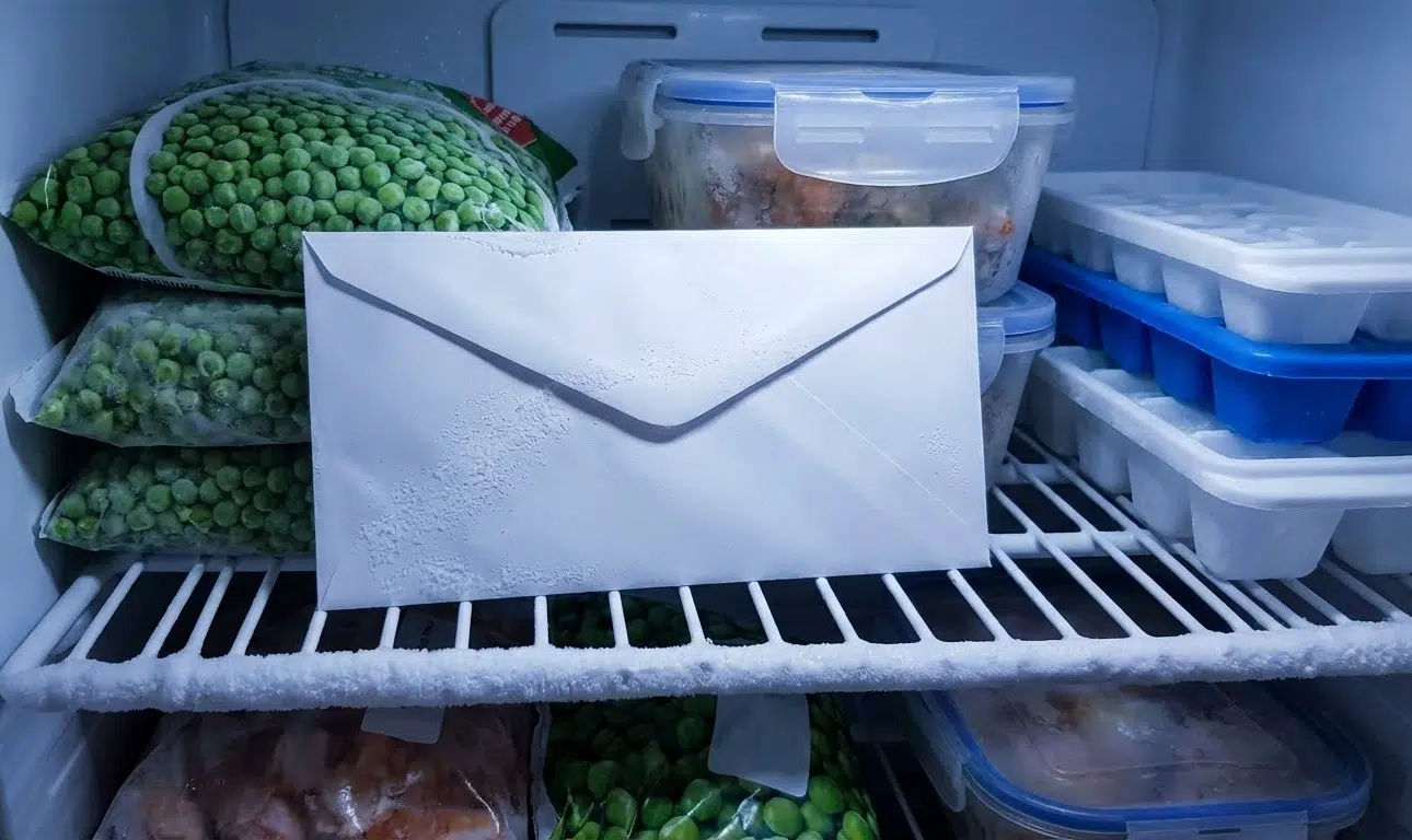 Important note: This only works on water-activated adhesives. Modern “peel-and-stick” envelopes use pressure-sensitive synthetic glues that laugh at freezer temperatures. If your envelope didn’t require saliva to seal, the freezer won’t help.